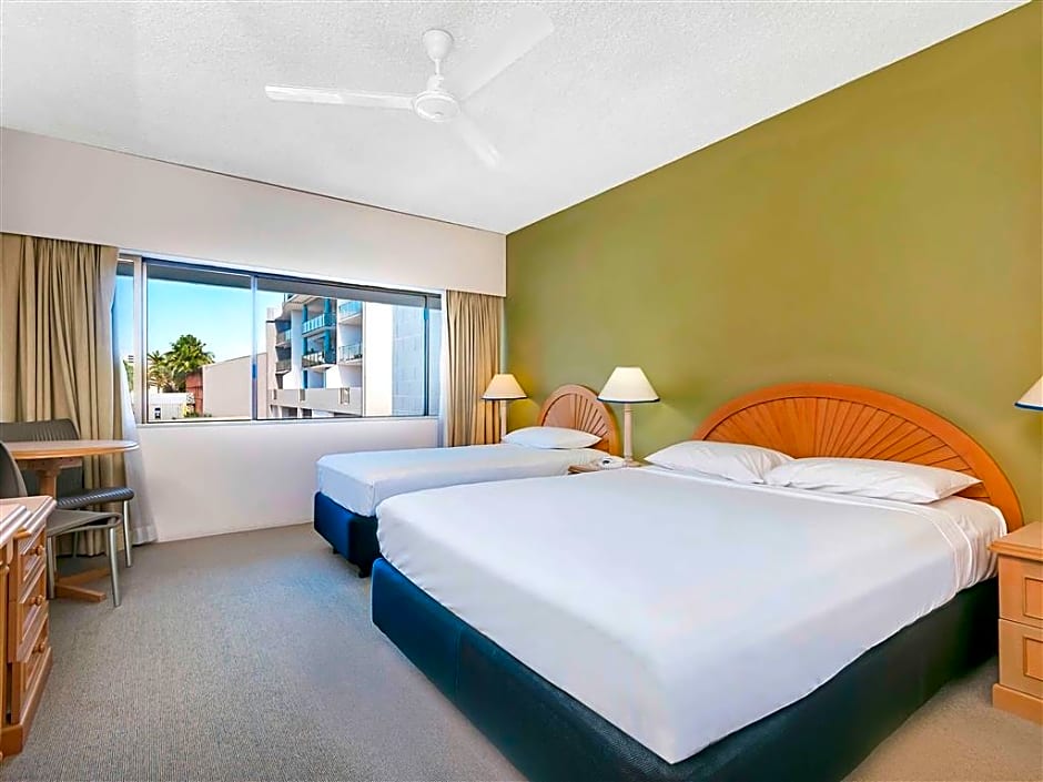 The spacious family room has an private bathroom with shower. It also includes a TV, air conditioning and fans, microwave, tea and coffee making facilities and a refrigerator. Some rooms have a balcony.